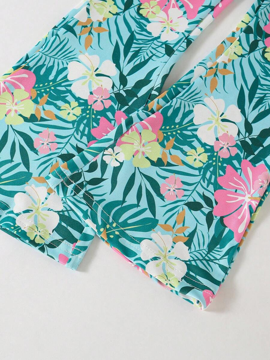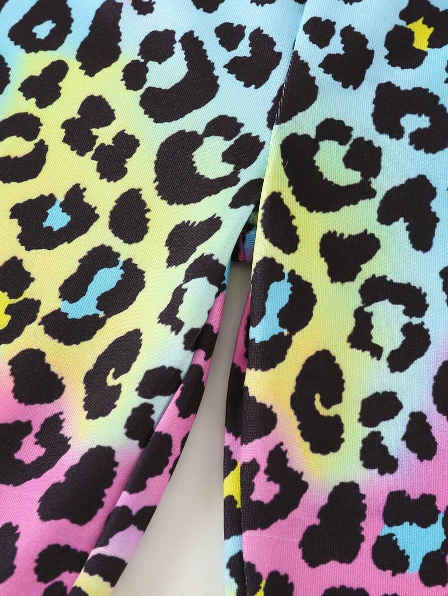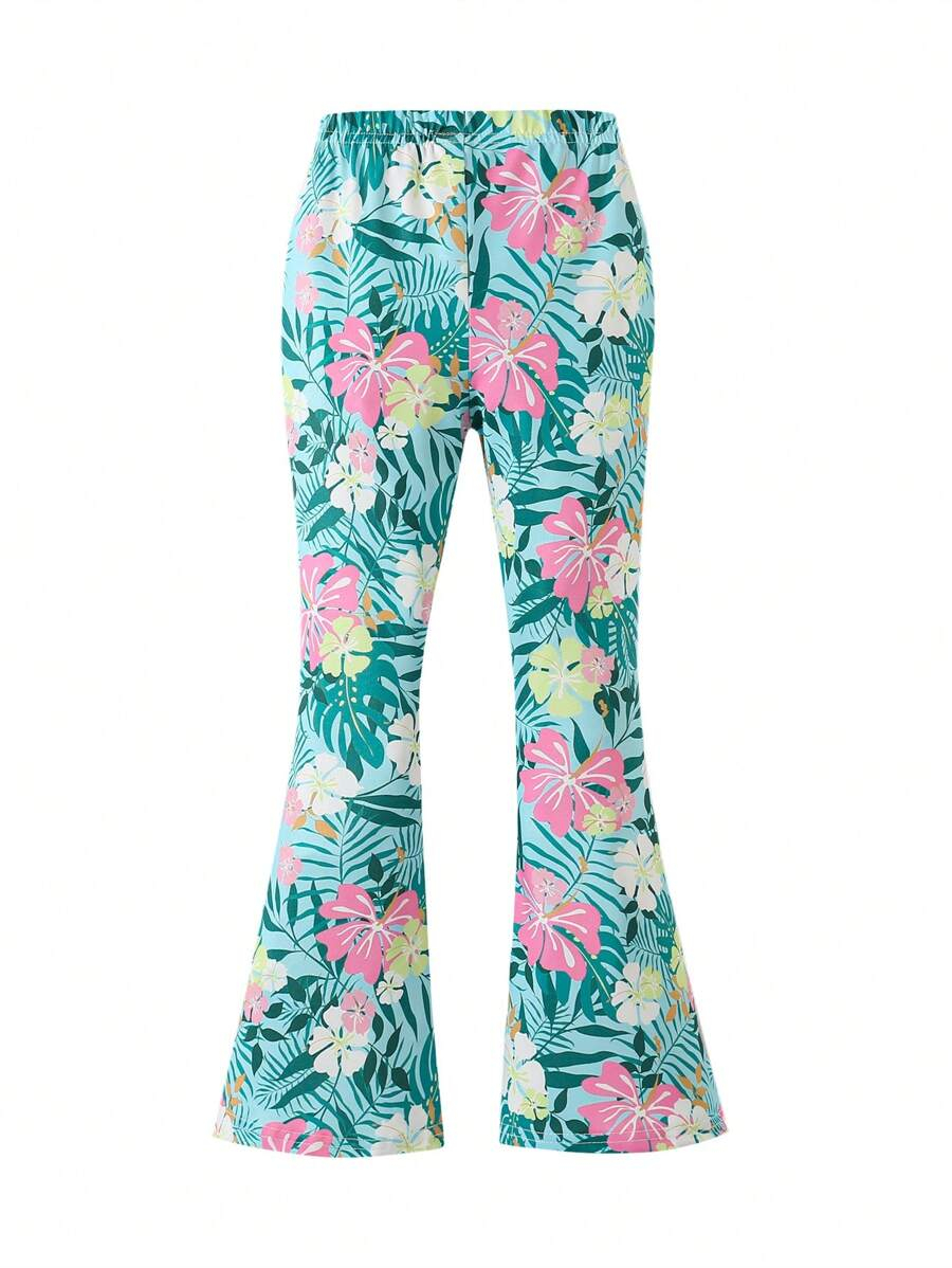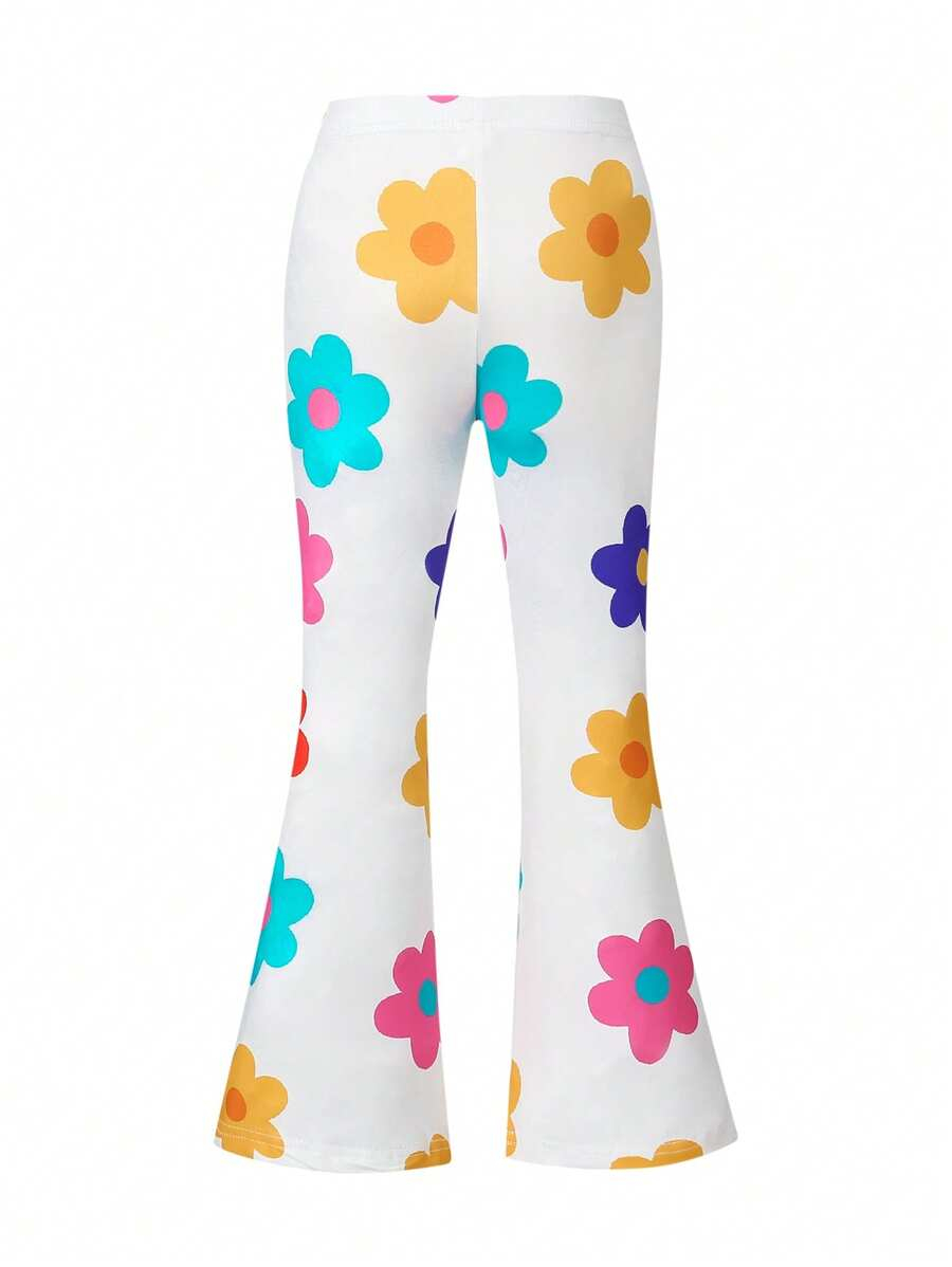 SHEIN Young Girls’ Fashion Animal Print Flare Leg Casual Long Pants, Suitable For Casual Outings In Spring, Summer And Autumn Young Girl Clothes Pants YG00023