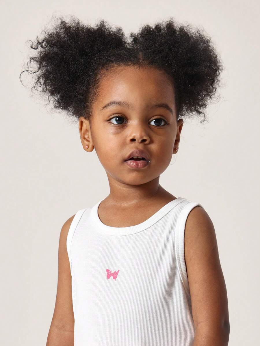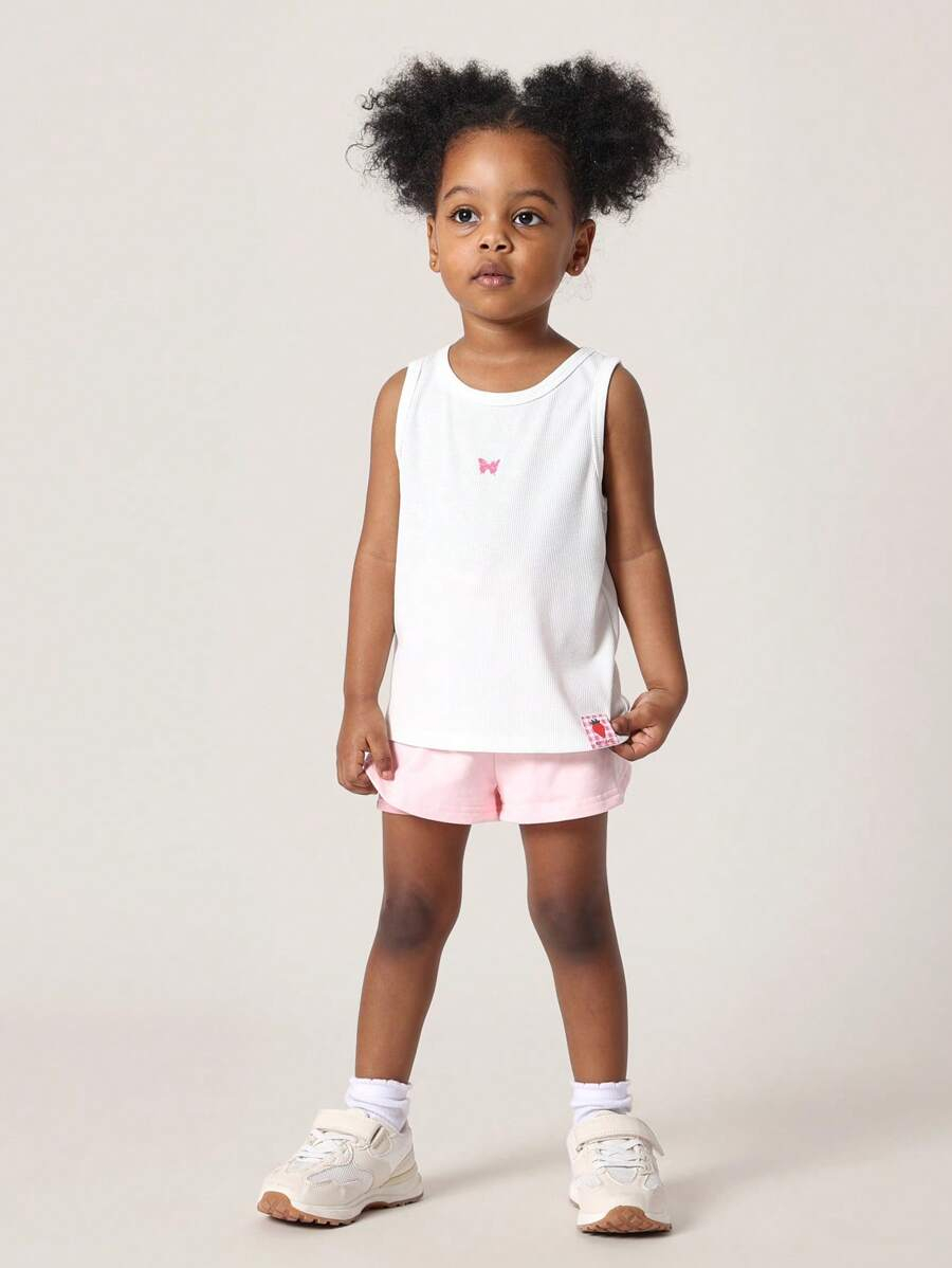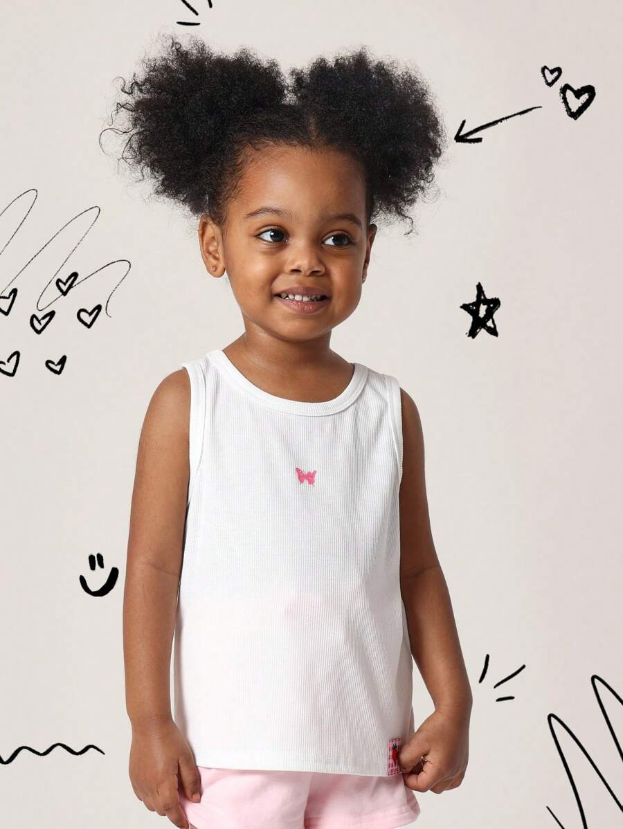SUMWON Kids Ribbed Tank Top Butterfly Detail Summer Sleeveless Undershirt Athletic Basic Cami Vest Girls Sports Dance Gym Daily Wear YG00007