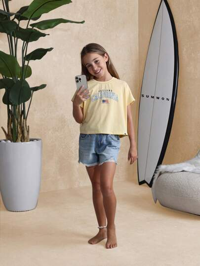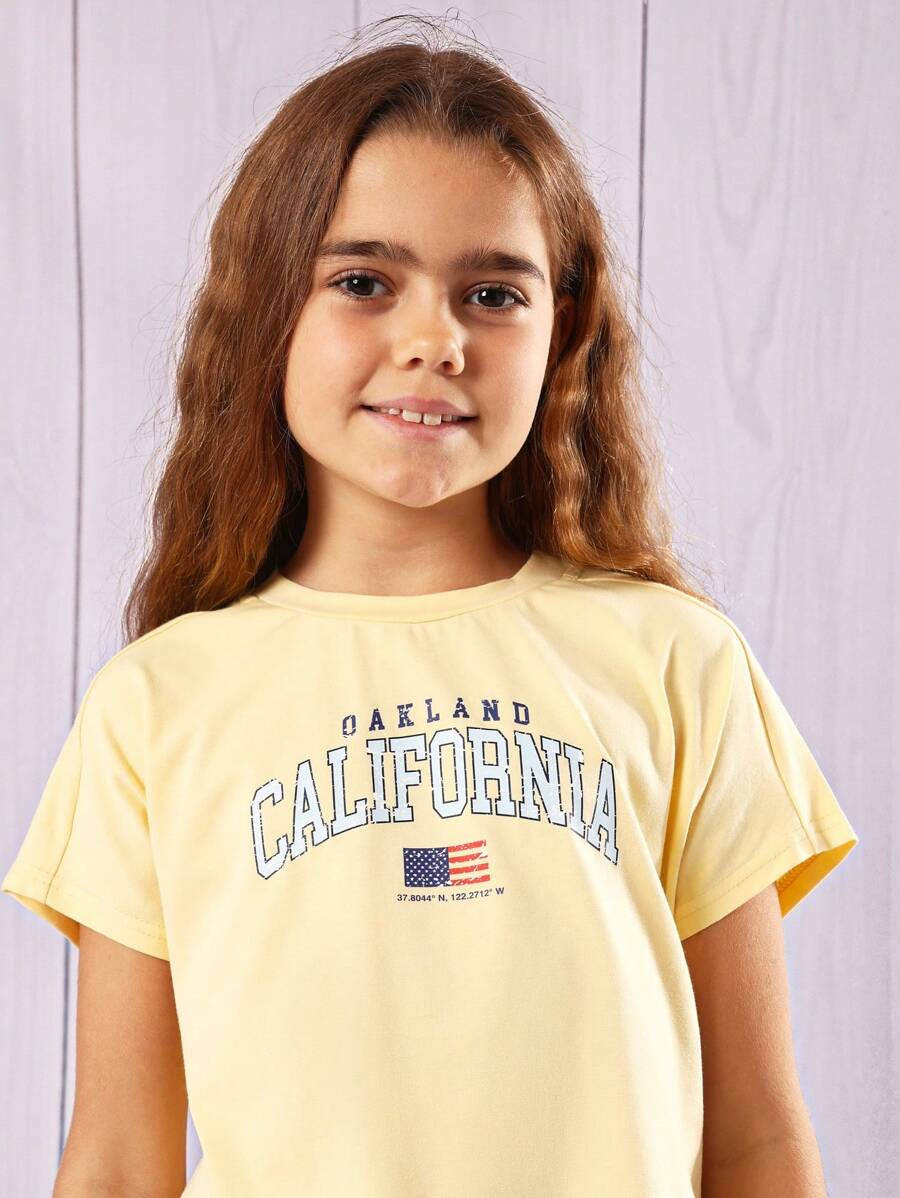 SUMWON Oakland California Usa Flag Coordinates T-Shirt Summer Casual Boxy Crop Top Varsity Style College Teen Campus Fashion Streetwear Spring Graphic Tee TG-8-12-00001