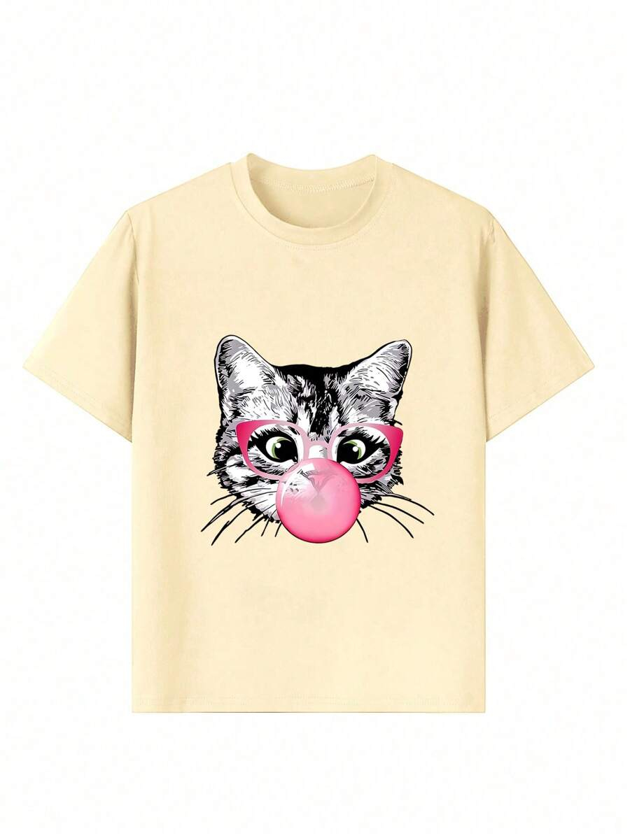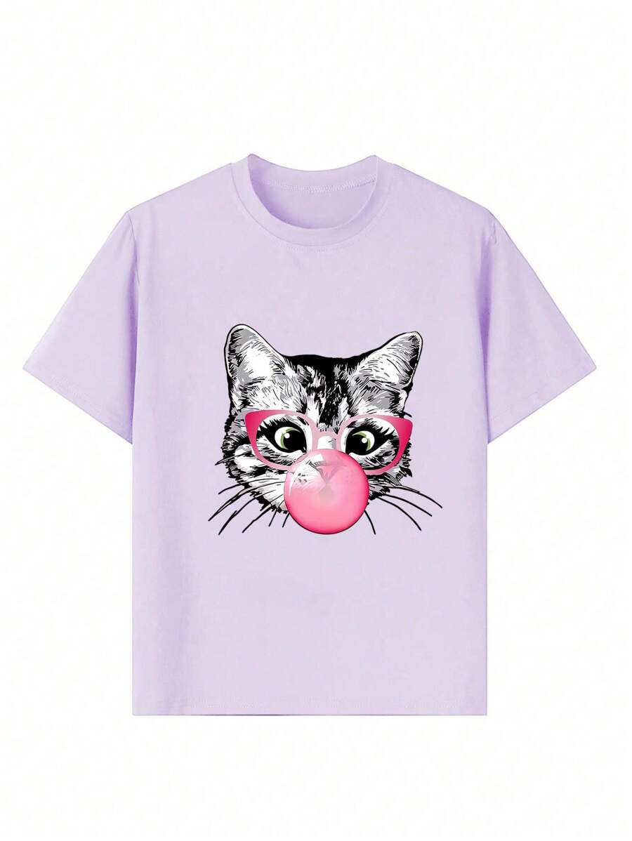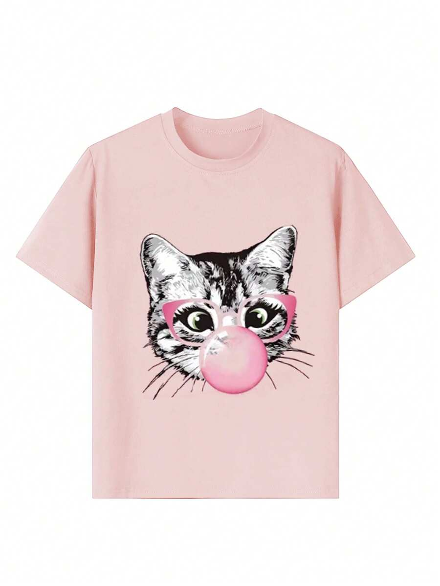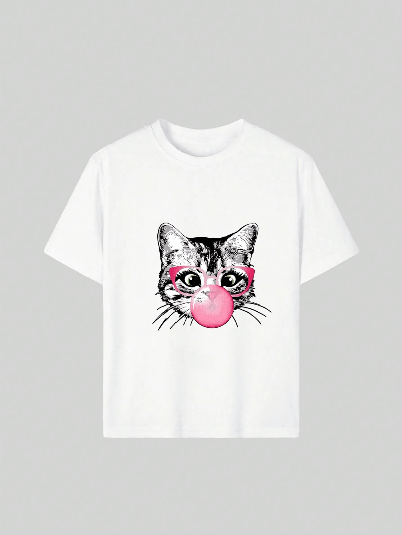 Tween Girl Casual Fun Print Round Neck Short Sleeve T-Shirt, Summer Top TG-8-12-00088