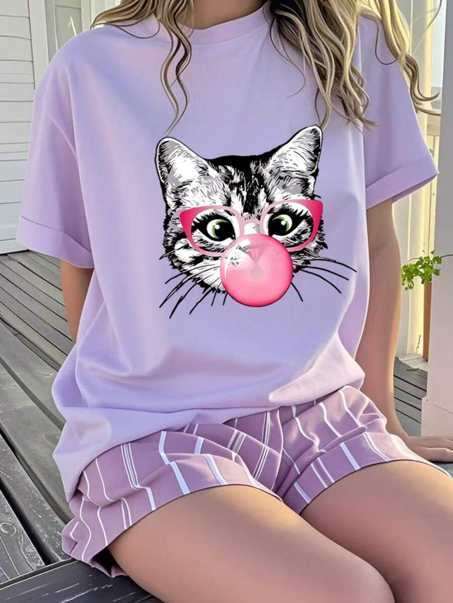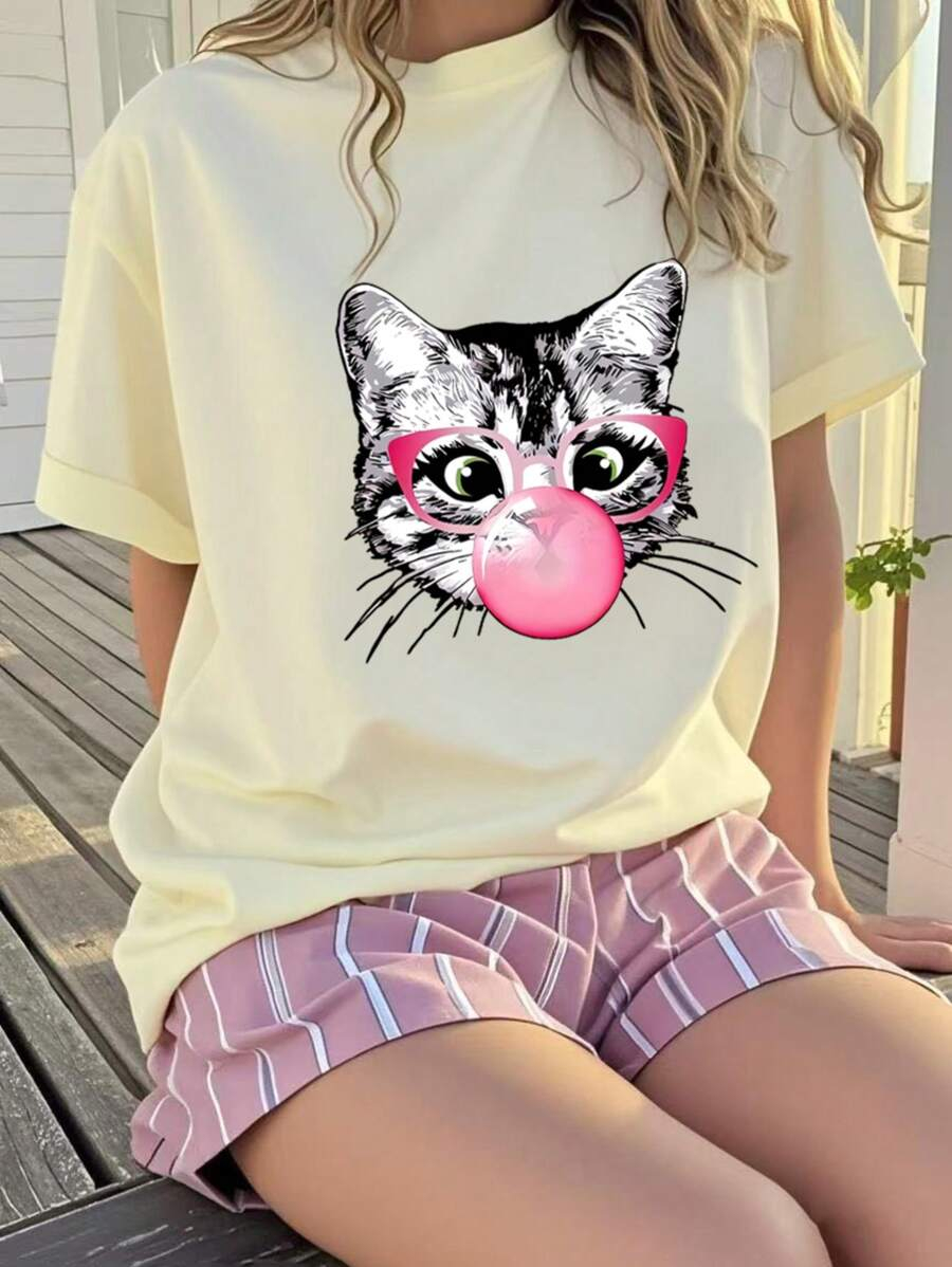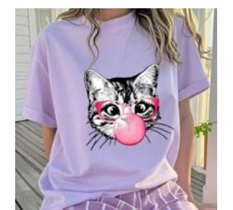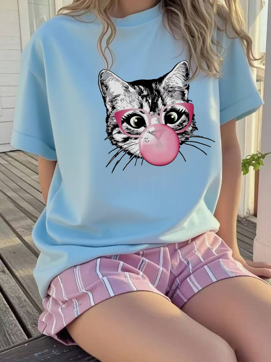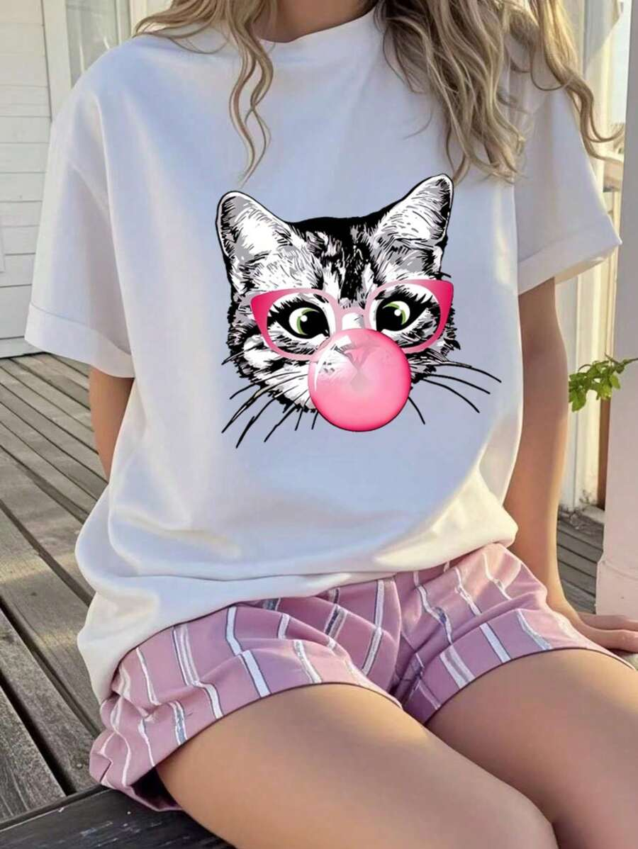 Tween Girl Casual Fun Print Round Neck Short Sleeve T-Shirt, Summer Top TG-8-12-00088