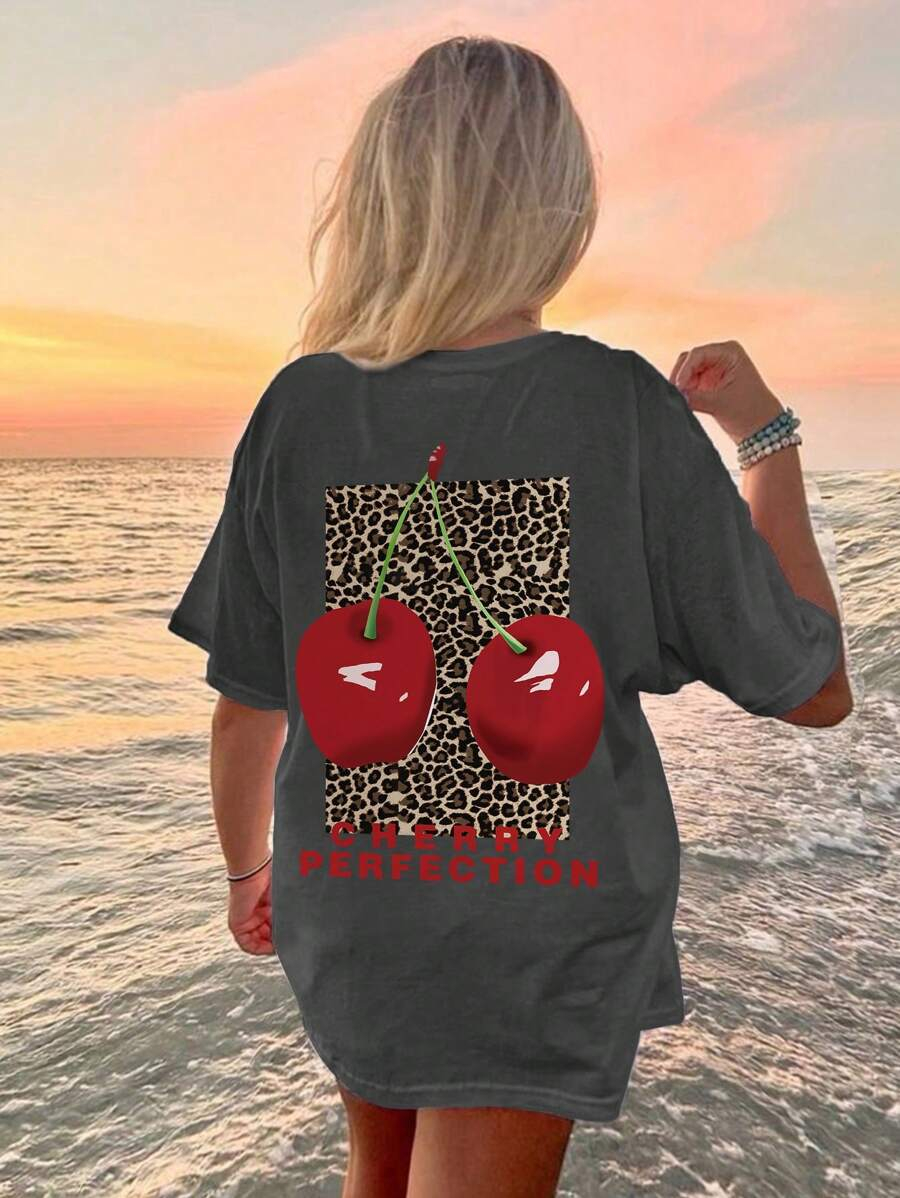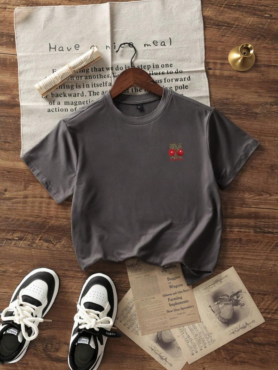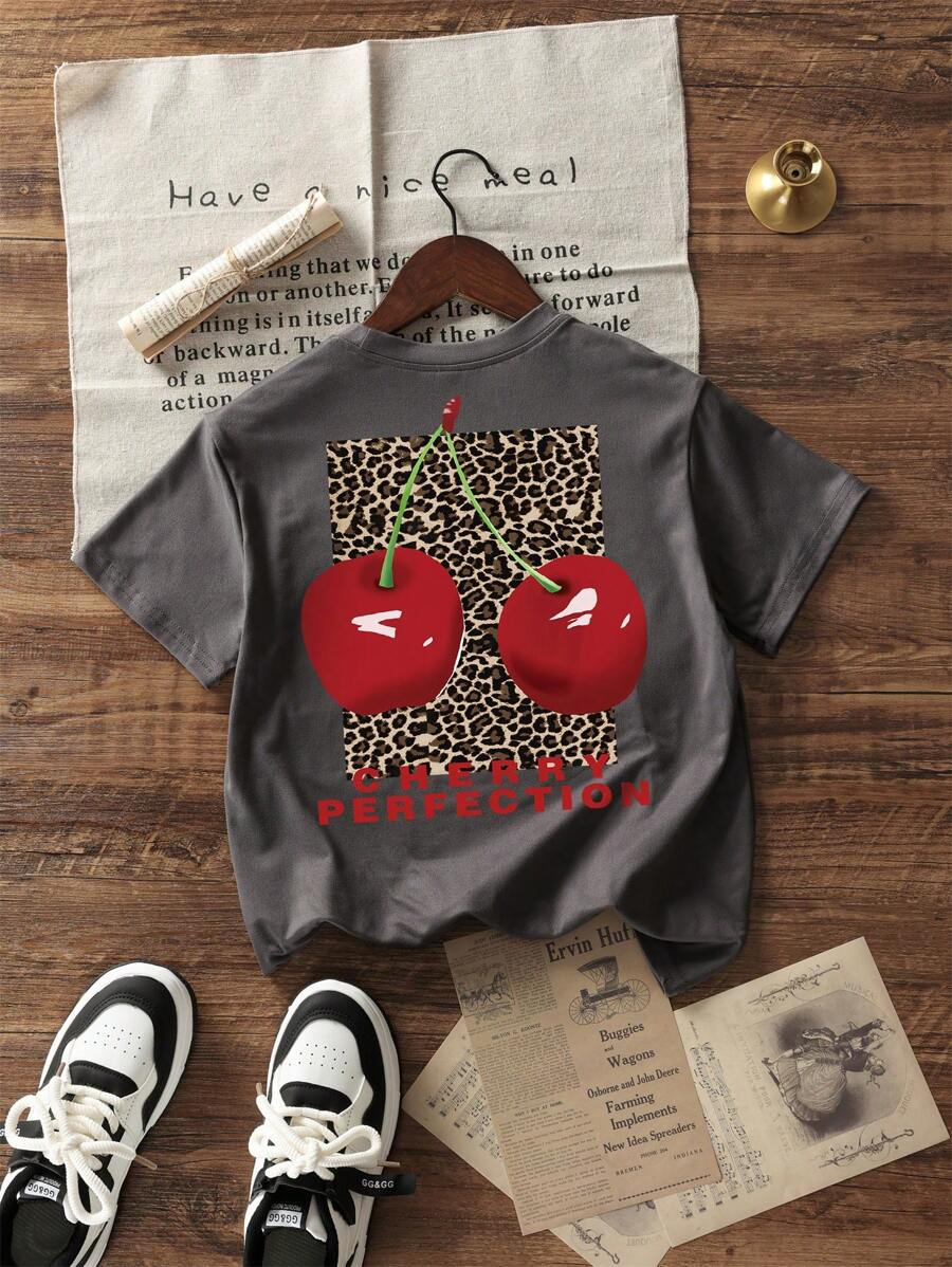 Tween Girl Casual Printed Deep Grey Crew Neck Short Sleeve T-Shirt, Summer Top TG-8-12-00033