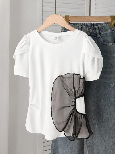 Tween Girls’ Casual Chic Elegant Outdoor Short Sleeve T-Shirt TG-8-12-00045