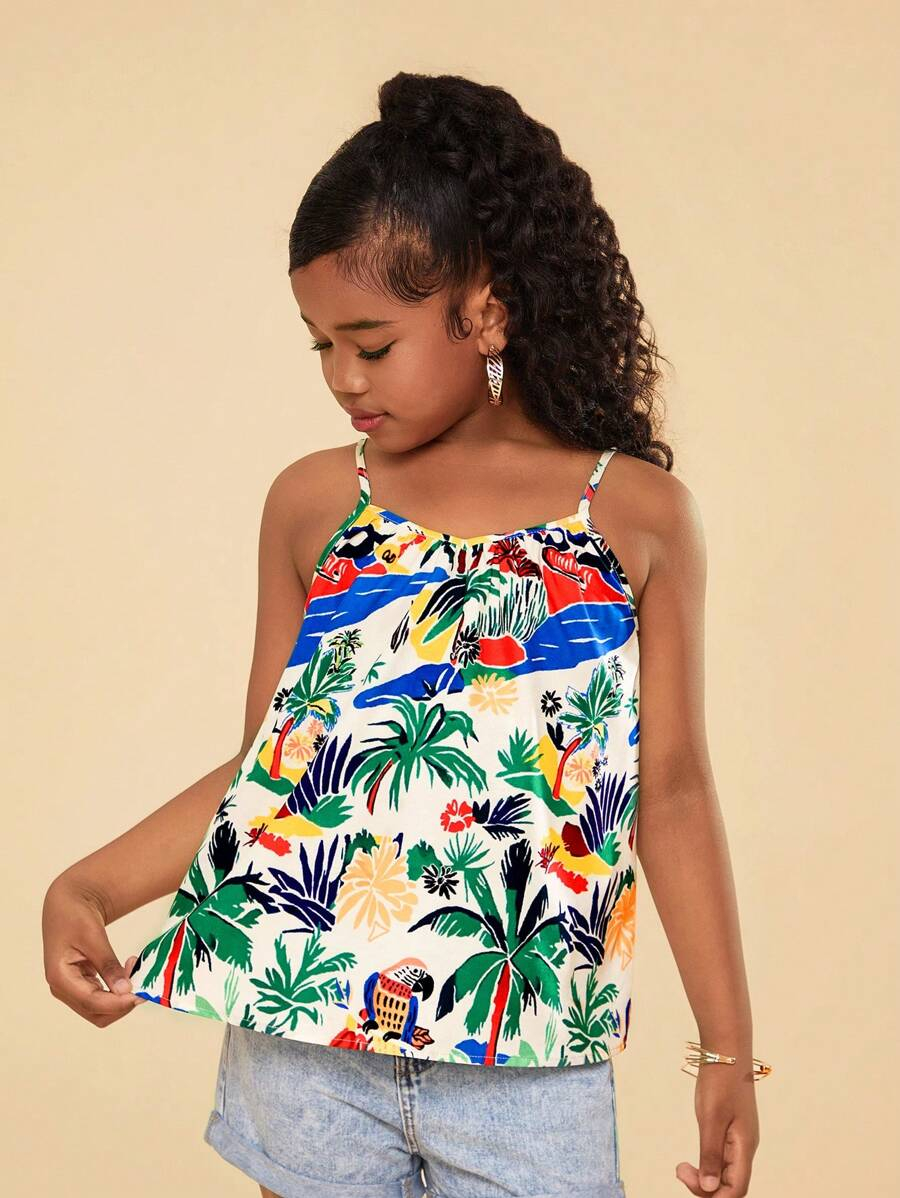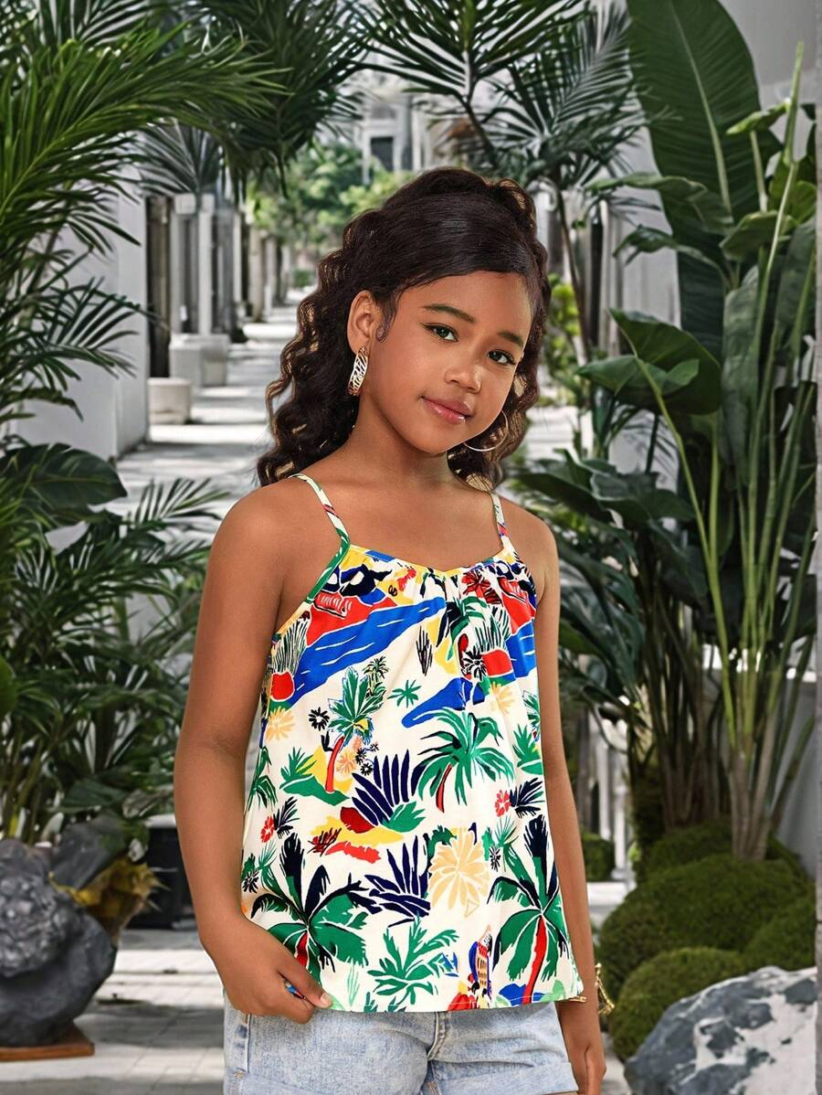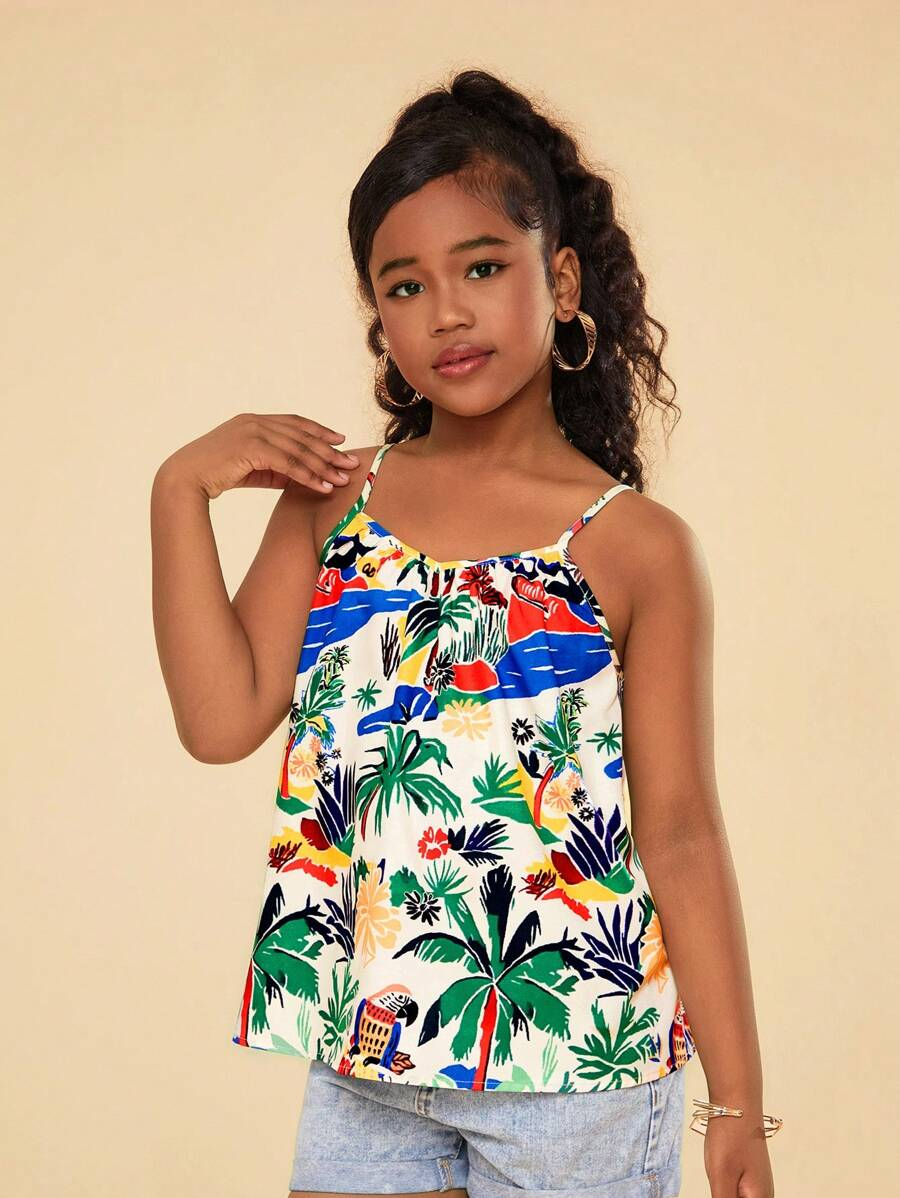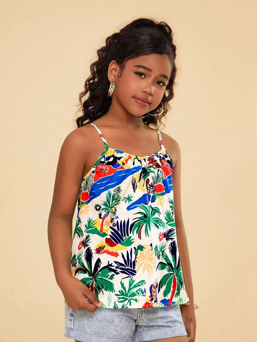 Tween Girls Woven Ditsy Floral Cropped Casual Vacation Cami Tank Top TG-8-12-00007