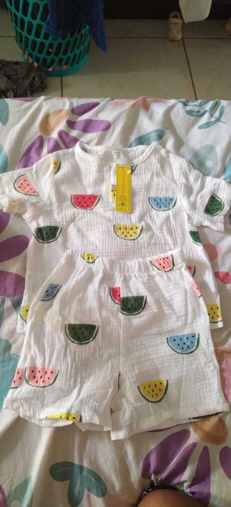 L entrega fue rápida, la tela es fresca tipo como algodón pero delgada, transparenta poco, es como onda de playa, la verdad esta muy bonito el conjunto. El color es el mismo de la imagen. Es para mi nena. Lo recomiendo. La talla es correcta.