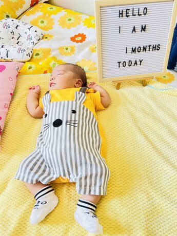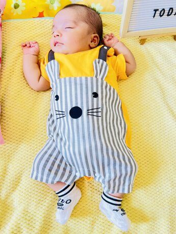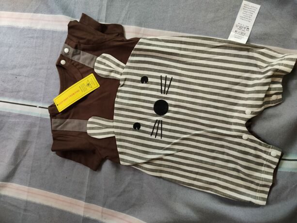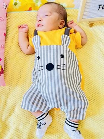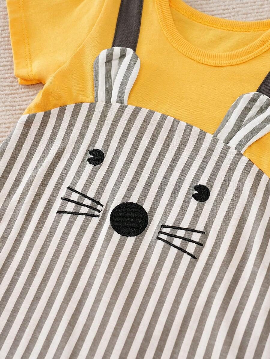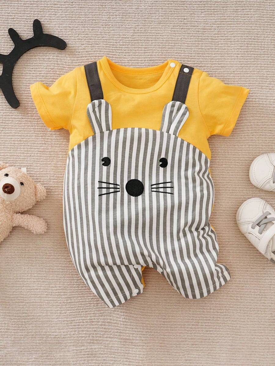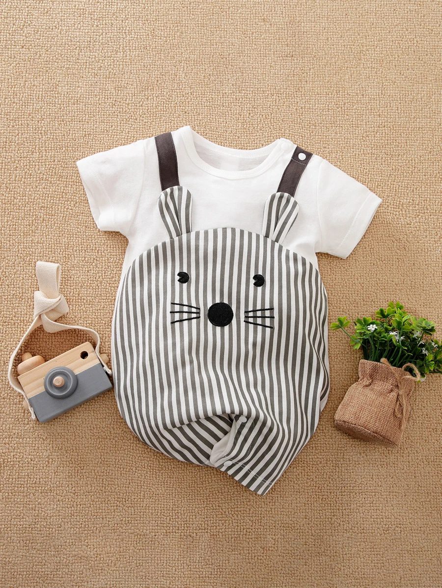 Yierying Baby Striped & Cartoon Graphic 3D Ear Design 2 In 1 Romper NB000014
