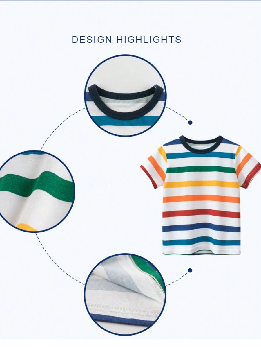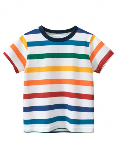 Young Boy Summer New Colorful Striped Round Neck Short Sleeve T-Shirt YB00012